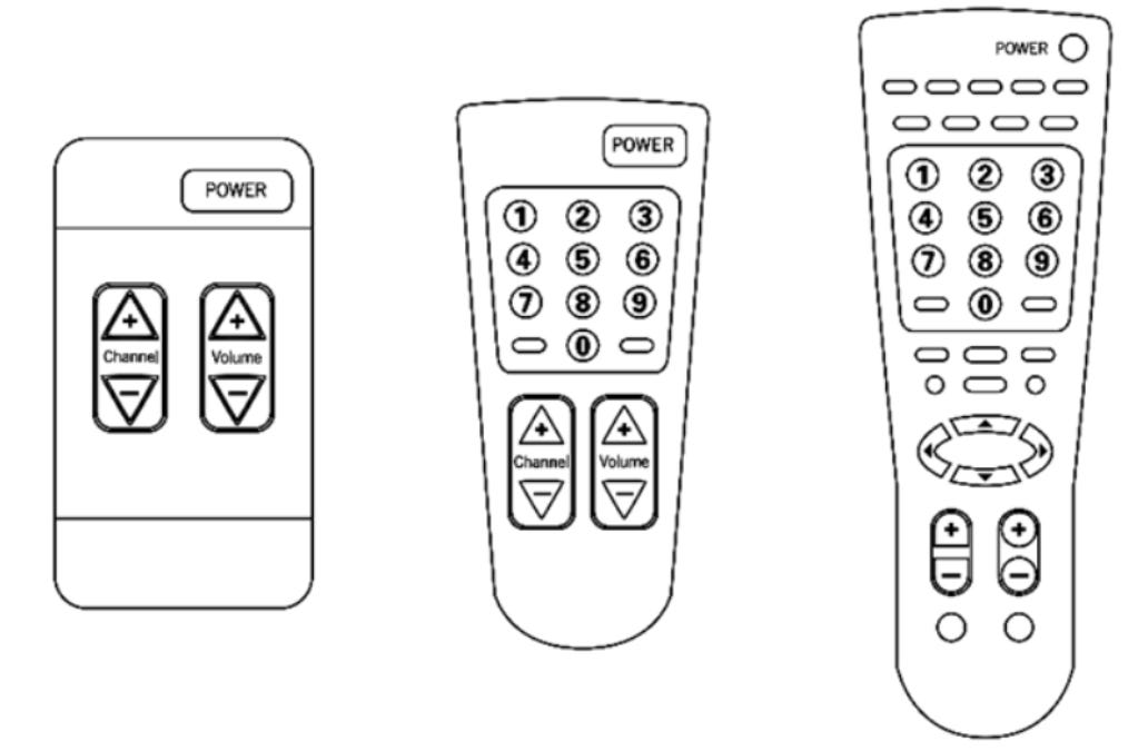 Flexibility-usability trade-off: flexibility allows you to do more things at the expense of complexity. Favor simplicity here: make designs easy to use and focus on the key feature set, but also do not over simplify. Hiding functionality to create the illusion of simplicity is a bad approach, so a fine-balance must be struck. In the below example, the middle remote-control is what we want.
